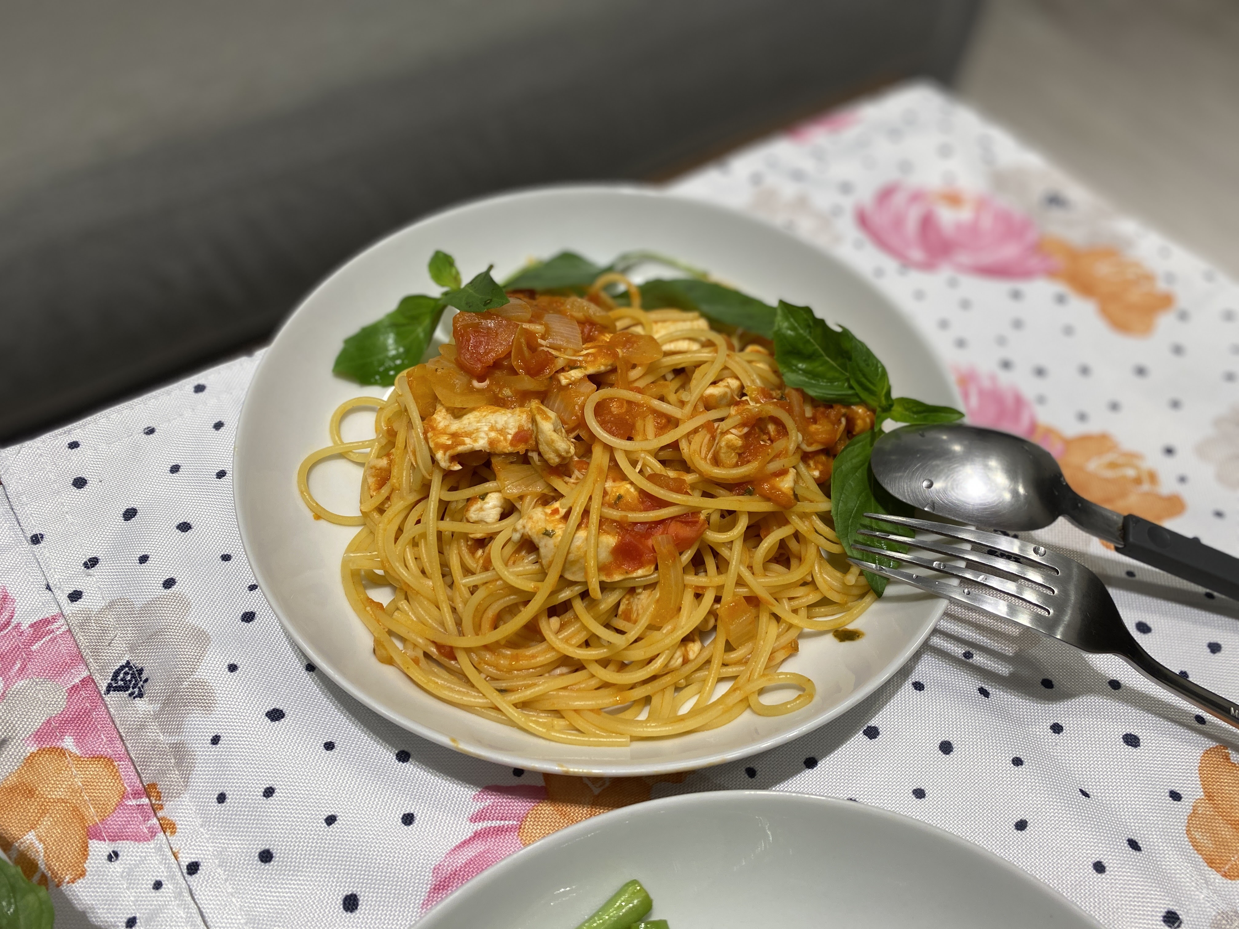 ★番茄雞肉金針菇義大利麵、炒四季豆、蛤蜊湯★
