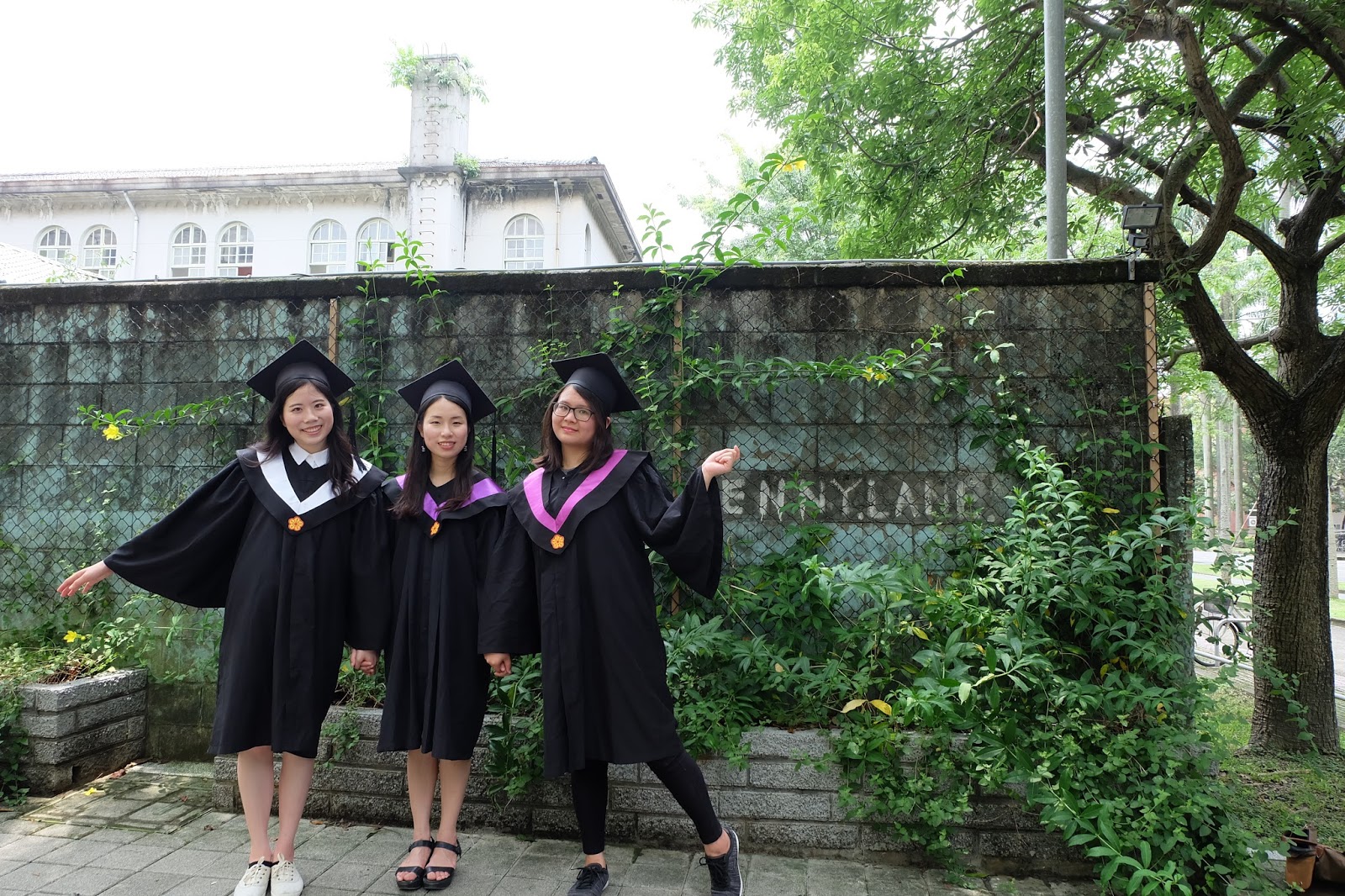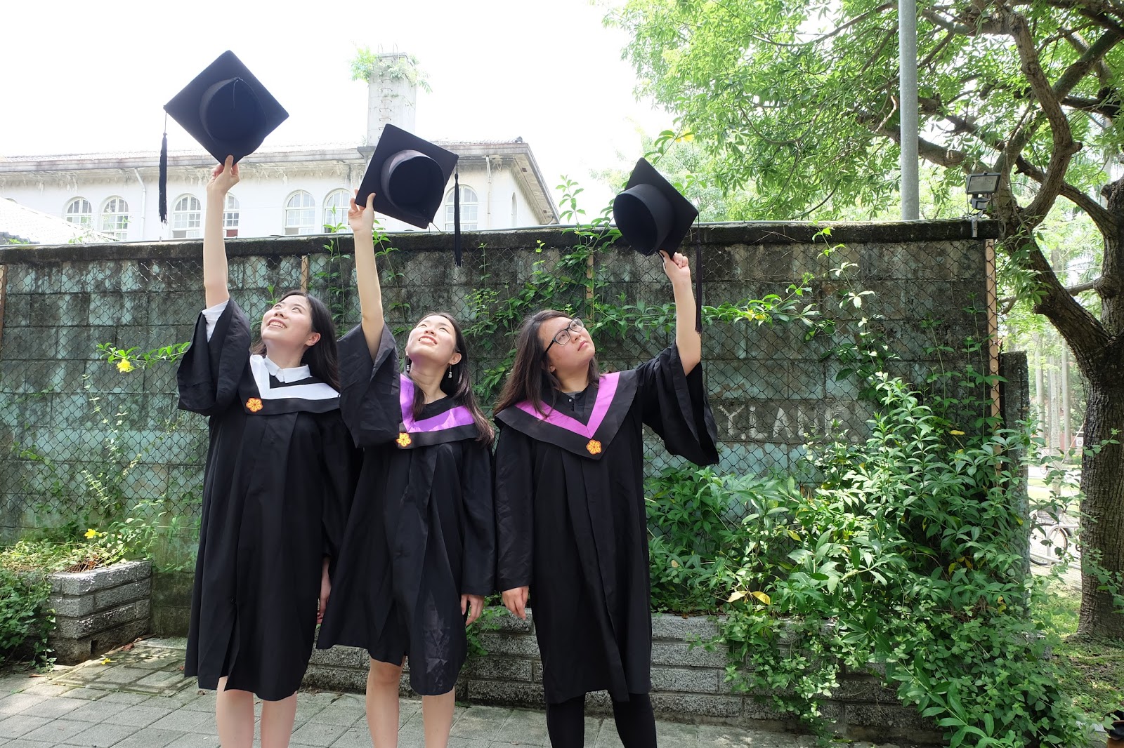 最近的太陽灼熱地讓我周末都成了宅女,非必要絕不在室外久待。幸好,和思詠、喬琪在校園拍畢業照的時候,還是六月最後一周,雖然暑氣已經很盛,但仍沒有7、8月的誇張,如果再晚幾周拍,大概每張照片中的我們都汗水淋漓、狼狽不堪吧!