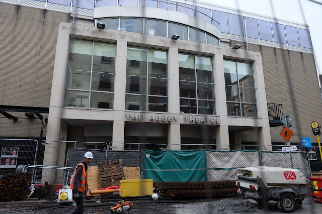 突然,在地圖上看到了Abbey Theatre就在不遠處,我便以興奮的心情快步過去,沒想到它門口的路也在施工,沒辦法拍到他門面的獨照,實為可惜。不過,進了劇院後仍是別有一番天地,雖然早在20世紀初就興建了,但也許是因為經過整修,整體是相當現代化。一樓的展示區因為復活節起義而有特展,介紹 Easter Week and the Abbey Rebels,因為當時Abbey Theatre的劇作家寫作多是寫獨立復興的主題,用文字來支持愛爾蘭共和軍、希望可以獨立成功。其中引述了Cathleenni Houlihan中的一句話很感動: They shall be remembered forever, They shall be alive forever, They shall be speaking forever, The people shall hear them forever. 讓我們知道這些起義分子的偉大,愛爾蘭有今日獨立局面都是這些人用血用淚爭取來的。