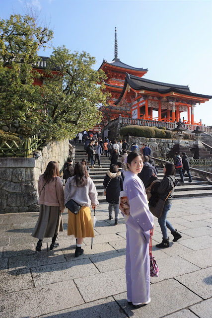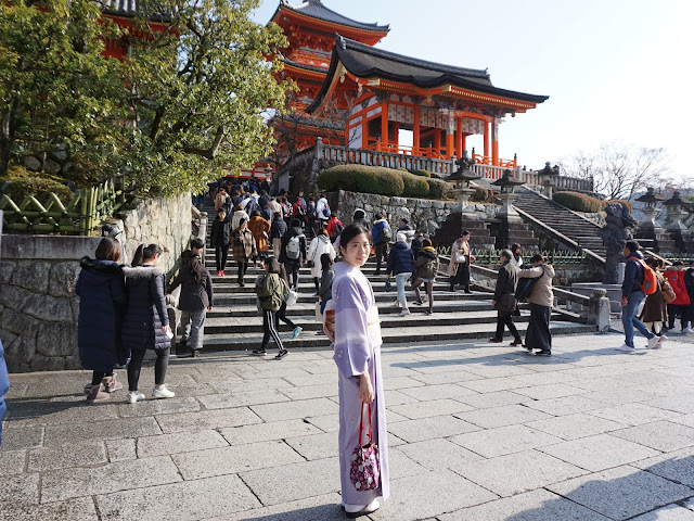 雖然穿和服有點辛苦,但能穿著漂亮的和服在京都漫步、逛寺廟神社,感覺特別不一樣,對了,途中還有一個西方女人幫我拍照呢~西方人自己好像不太會想體驗和服(可能覺得個子太高穿怪怪的),但都會以欽羨讚嘆的目光投以穿和服的女子,讓我都覺得走起路來更有自信了呢哈哈,是個自信心爆滿的一天😍😍