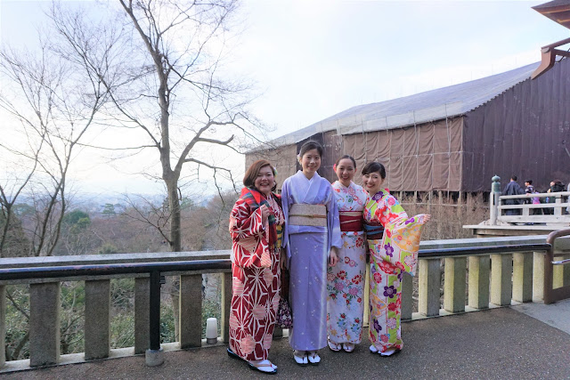 | 跟這三個日本女生超有緣,自清水寺一路到兩三個景點都遇到她們~她們挑的和服比較鮮豔,三個人穿起來也超級可愛,和服很適合一群女生合照呢! |
