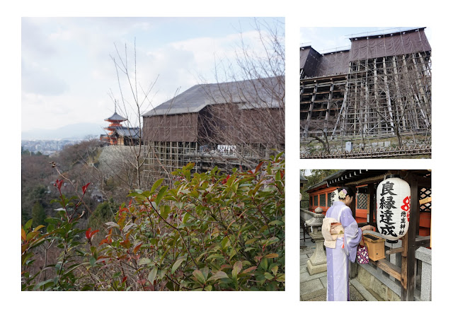 | 這個清水寺和我們以往看到的照片或風景圖不太一樣,看不到原本的屋頂,原來清水寺本堂外觀整修中,預計2020年才會完工😥 幸好遮起來還不算太醜,希望有天再來看它的真面目! |