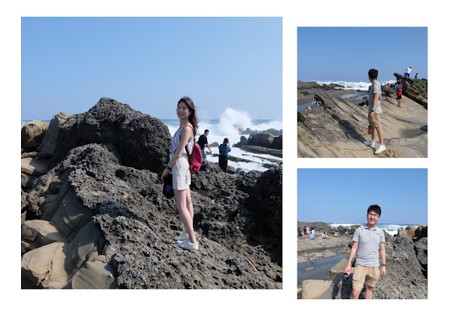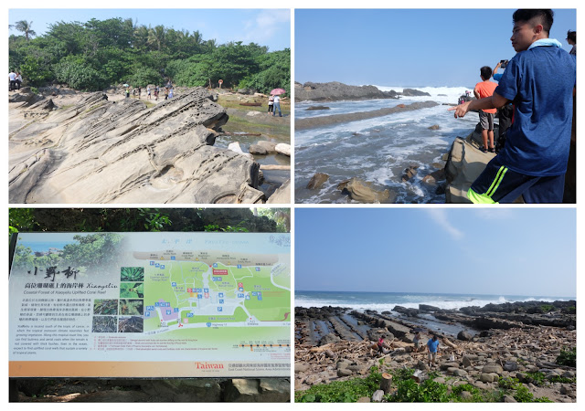 長久被海浪侵蝕的岩石呈現各式各樣的造型,雖不若北部野柳範圍很廣,但也著實呈現大自然的力量。這天雖然天氣很好,但隔天預報會下雨,海浪越來越大,許多人跑到很前面,被海浪打成落湯雞,差一點回不來,頗驚險!