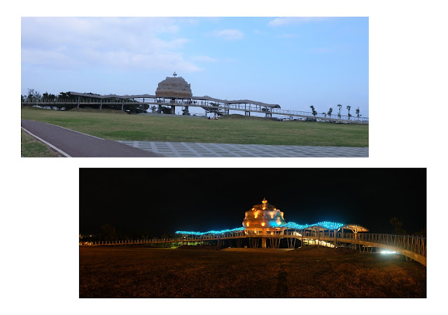 | 晚上的國際地標在七彩炫麗的燈光下顯得更浪漫,聽說每晚八點與九點整各有一場不同主題的光雕音樂演出,結合國際交響樂及原住民風格組曲,感覺很精彩! |