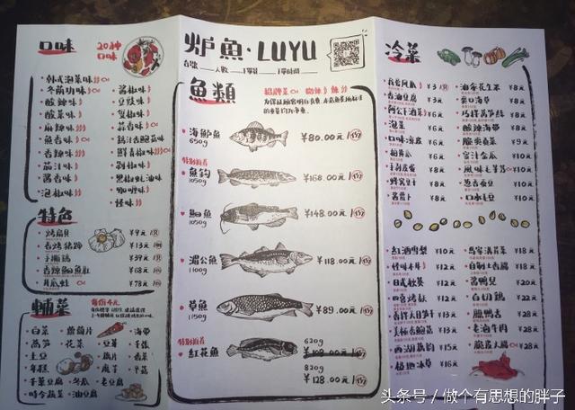 上圖是網路上找到的菜單,簡單來說就是選一隻魚、挑一種口味、選擇其他蔬菜配料。