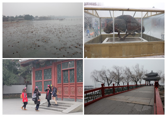 在北京的頭兩天天氣很差,霧霾很重,整個城市都是灰灰濛濛的。不過在頤和園的湖畔,這種霧濛濛的視覺效果倒也營造出一種夢幻的氛圍。而且湖都結冰了,灰白的色彩搭上冬日之景,還挺有意境的 (學姐聽完我這番說詞,說我開心就好XD)。