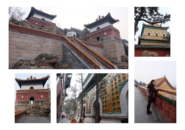 北京大學、清華大學離兩座皇家御花園都很近,但因為圓明園在英法聯軍時被焚毀,僅剩下遺址,相較於頤和園看頭較小,再加上Anna說這是她北京最喜歡的地方,所以二擇一就選擇頤和園了。我們從北宮門的入口買票進去,一路往萬壽山上爬,沿途有不少佛寺、藏經閣的,不過許多路面都崎嶇不平,不知道當時慈禧太后或其他的嬪妃女眷都怎麼克服的?