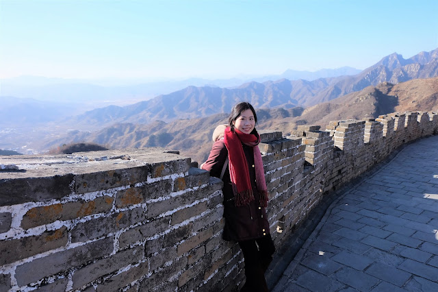 那段石階梯的頂就是慕田峪開放給民眾可到訪區域終點站,再往上就是明朝時期的舊長城,因為還未修復完成,雖然可以跳進去,但又更陡、更高,我們只爬個十階就決定折返。